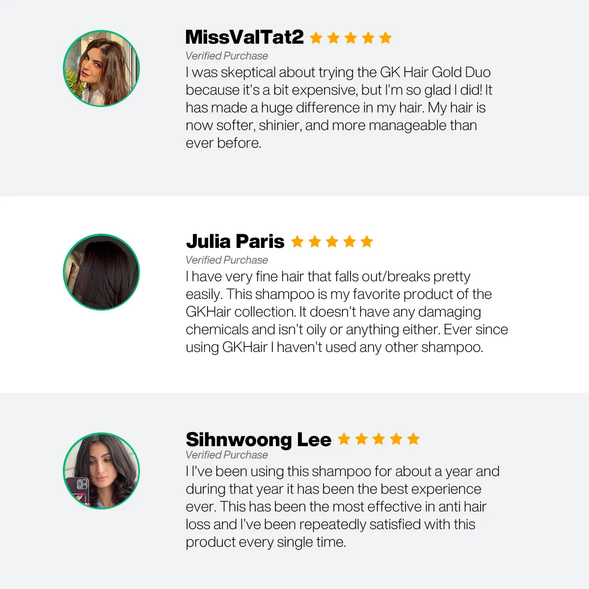 Bring back your hair’s natural youthfulness while giving it a gentle cleansing with GK Hair Gold Shampoo and Conditioner Duo!