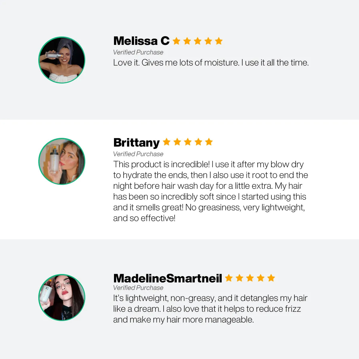 A: The Leave-In Conditioner Spray is best for hair hydration and detangling.