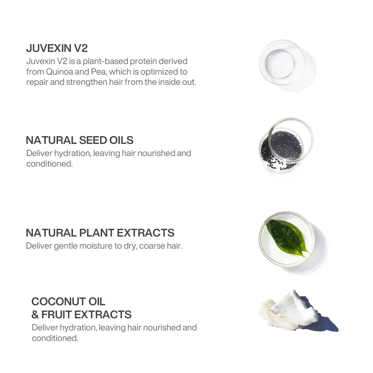 Juvexin V2: Juvexin V2 is a plant-based protein derived from Quinoa and Pea, Which is optimized to repair and strengthen hair from the inside out.
