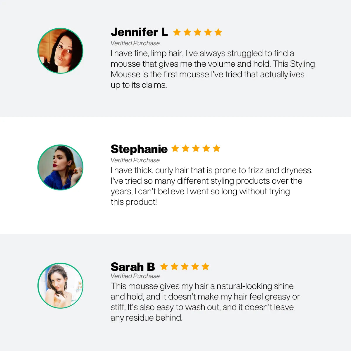 Style your hair effortlessly with Hair Styling Mousse, a smoothing aid that instantly removes frizz and flyaways and prepares the hair for smooth styling.